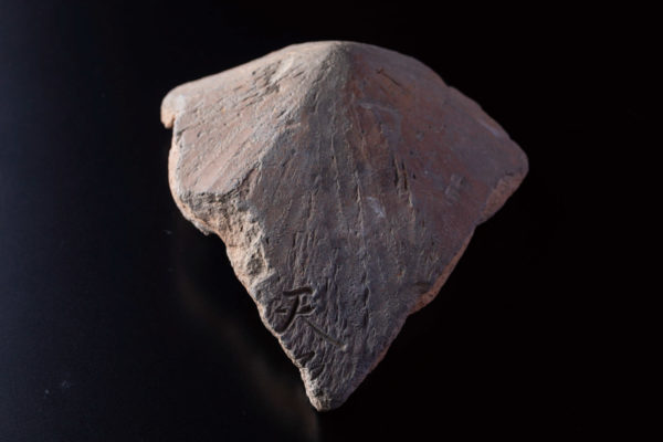 曾佇立於黃金山產金遺跡中的佛堂所使用的屋瓦。我們能夠從屋瓦的形狀判斷該佛堂為六角圓堂,並藉由屋瓦上所記載的年號「天平」斷定佛堂的建築年代為天平年間,是能使我們具體了解遺跡細節的珍貴史料。