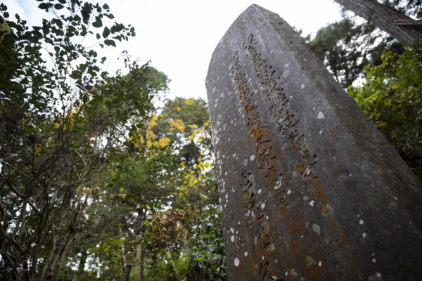 萬葉歌碑位於黄金山神社腹地內,其上刻有與聖武天皇一同歌頌產金喜悅的大伴家持曾經詠唱的萬葉歌,其內容大概是「位於小田郡(涌谷町)的山區」產出了黃金,被搬運到遙遠的國都奈良,成為了舉國歡騰的喜事,是象徵著「陸奧黃金」的代表性歌碑。